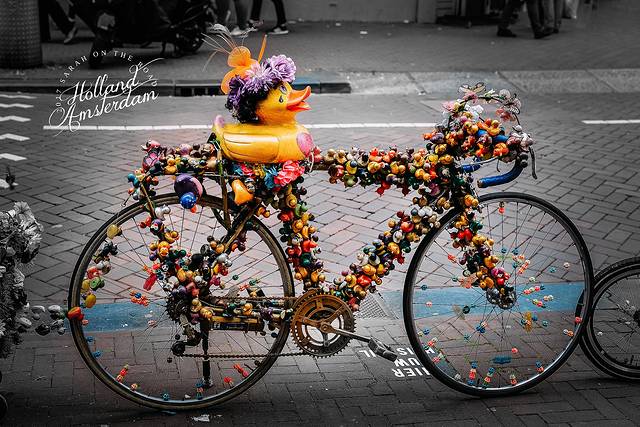 老城里看到这个被小黄鸭装饰的自行车,还可爱了。