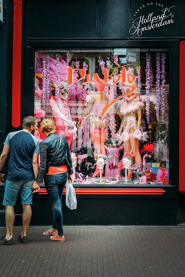 红灯区最让人血脉偾张,就是橱窗里穿着比基尼搔首弄姿的女郎了,这里不允许拍照,如果你拿相机或者手机对着她们,会立刻拉起窗帘,或者对你比中指,更猛的女郎会冲出来摔你手机。