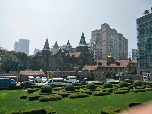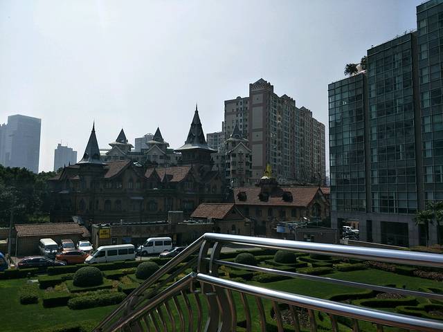 从天桥上往下看,目光总不禁被这座“童话城堡”所吸引。褐色的塔尖高高耸立,中国式的琉璃瓦、老虎窗随处可见,精致美丽的图案色彩斑斓, 远处看去如同童话中的城堡一般。