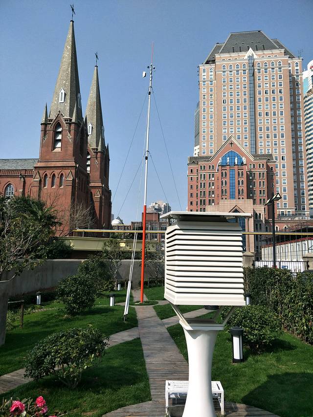右手边草坪上百叶箱里就是徐家汇测气温的,当然还有测风向风速等等,反正都在这里测。
