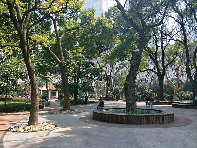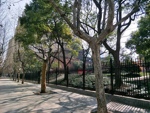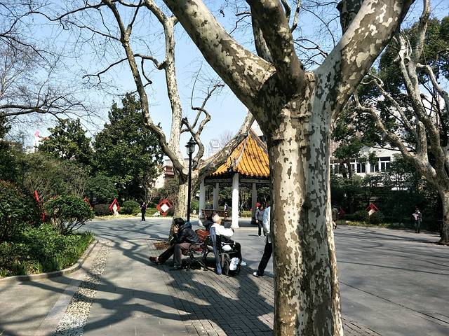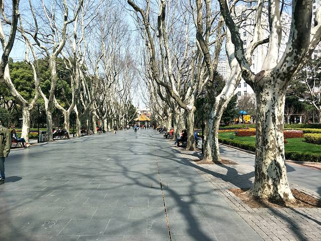 悬铃木大道:园门内一条南北向的宽阔大道,两旁高大虬劲的悬铃木浓荫蔽日,十分壮观。道路两侧有法国式轴对称几何形的花坛,种植四季花卉,与园外淮海中路上的花坛交相辉映。