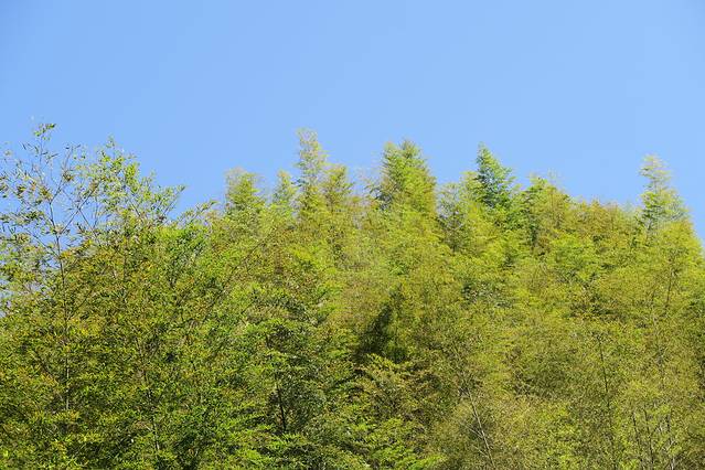 路上有很多竹子 还不是特别绿 但也挺漂亮的