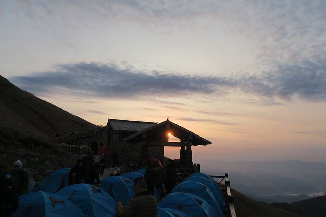 我们住的地方在一个山神小卖部的地方 靠近公共厕所 还是挺好的 是在山下订好的(我有朋友国庆节来来武功山 当时300/顶)所以在山下买水的时候 阿姨说120/顶的时候 觉得完全可以 就订好了 其实不是节假日 完全可以到山上在订 还便宜一点 100/顶