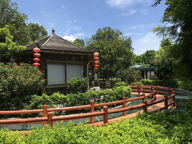 环境很赞,像一个古代的皇家园林,有池塘,有小桥,房间是独立的小木屋。