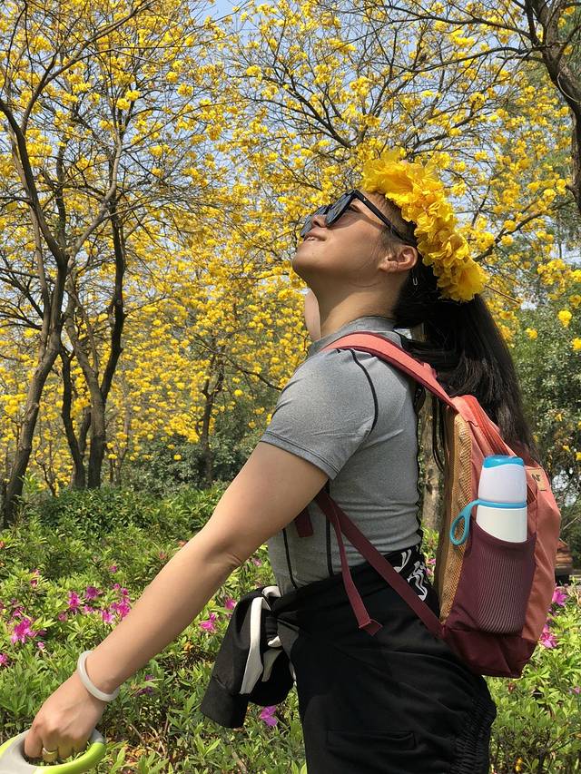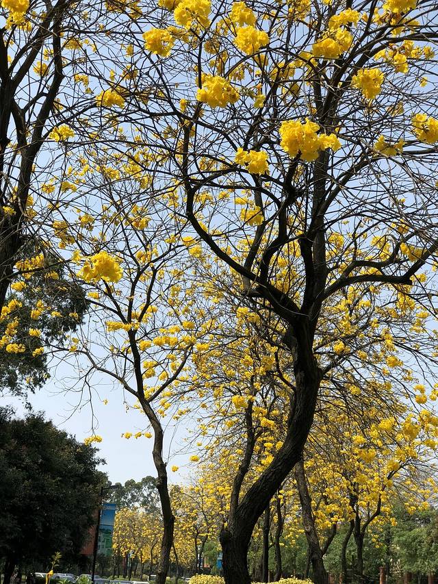 黄花风铃木掀起了春游热潮,园区内好多来赏花的自驾游客