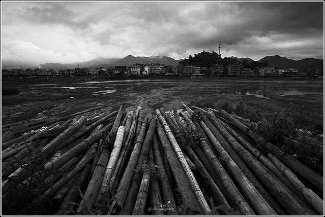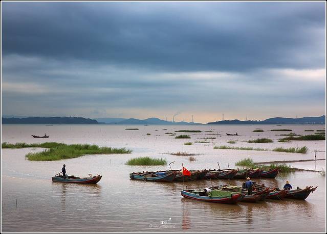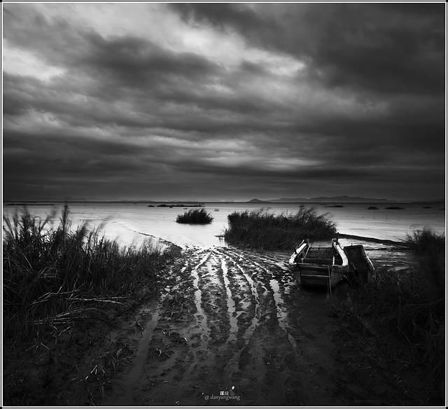 这是一片滩涂,灰色的天,灰色的海,灰色的山峦在远处的海天线若隐若现。要下雨了。