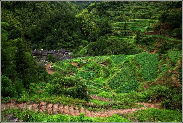 村口,几座竹木支撑的房子映入眼帘,结构精美,古朴典雅,亭台楼榭一应俱全,都是村里人自建而居,并提供游客食宿。从停车场下得车来,沿着石径而上,一家新建的客栈就在村口的不远处。二楼的窗外郁郁葱葱,溪水在屋前哗哗流过,只是这般画面,时光已倒回千年——“当时只记入山深,青溪几度到云林”。