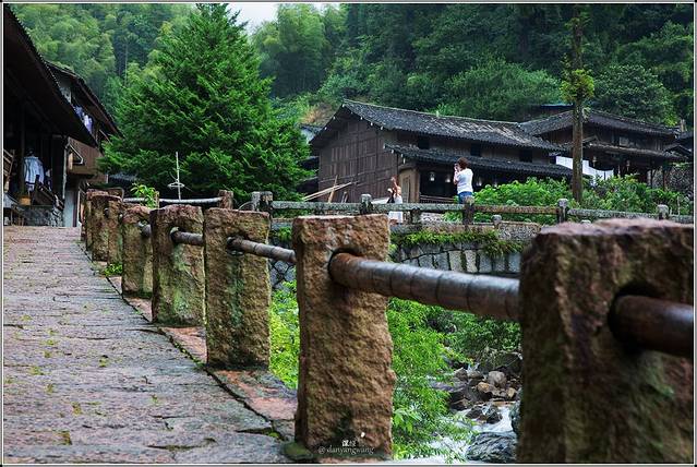 村里最有特色的是两座年代久远的古桥,一座石桥,一座木桥,村舍从桥的两侧依山势搭建,屋瓦毗邻。