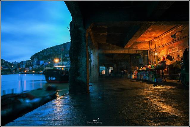 靠海的长廊是一个小小的渔市,只有一个小卖部给寂静的黎明带来些许生气。