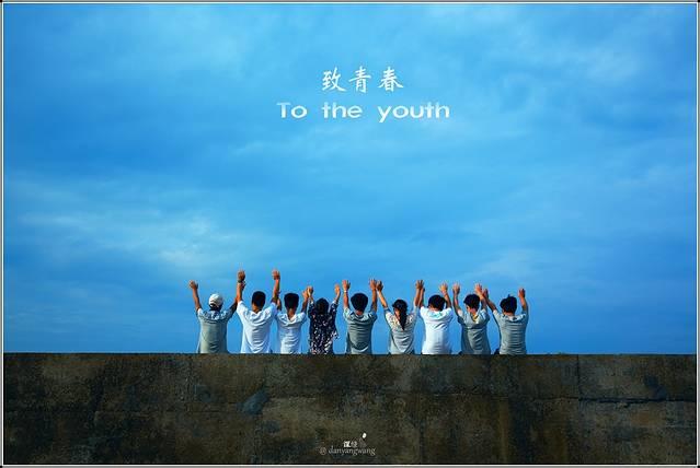 一群毕了业的学生坐在堤沿,