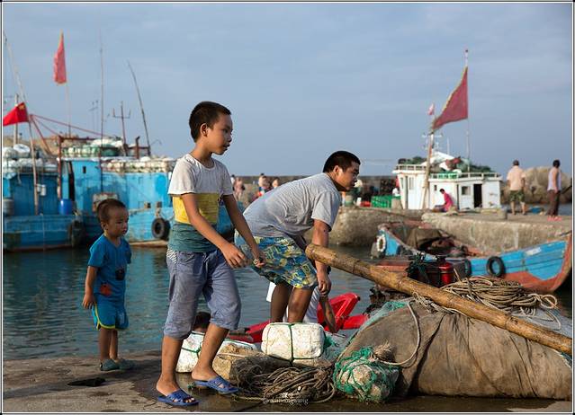 在东海,每年的6月15日-9月15日为休渔期,正值8月末,渔民们已经在港口忙碌起来,整理渔网、捡修渔具,为出航做着准备。女人和孩子们会在边上看着,对她们来讲,这是男人的事,无需帮衬。这些世代生活在岛上的原住民,皮肤黝黑,刚毅质朴,散发着自然与野性的魅力。