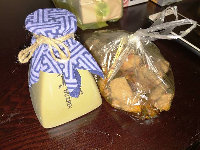 在西栅东半部分简单逛了一圈,买了三白酒和豆干回去做夜宵