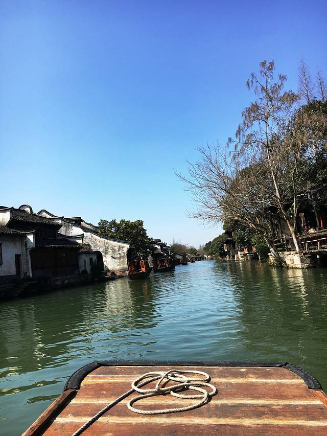 我们下午才离开,还有不少时间,不急着退房,今天游客已经不多,先到码头买了船票,体会一下水上乌镇的景致,阳光下的乌镇也多了几分色彩