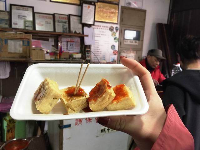 这家的臭豆腐是此行的小惊喜,这条街上为数不多需要排队到街上的,主要原因还是老爷子慢工出细活呐