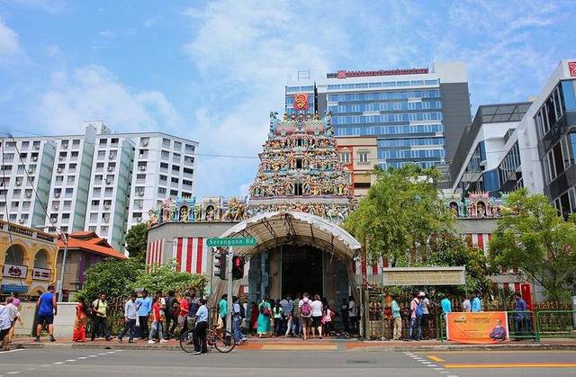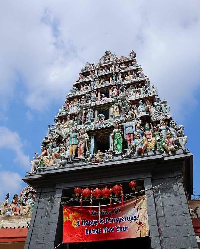 马里安曼兴都庙,新加坡最古老的印度庙,供奉专门驱逐霍乱瘟疫的马里安曼女神,门塔装饰着各种神衹与神兽雕像,精美程度让人惊叹!