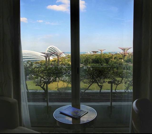 房间面朝滨海湾公园,花穹和云雾林两座白色玻璃建筑与超大铁树遥相呼应,风景独好。但是房间不算大、与国内五星级酒店没法比,谁叫这里是寸土寸金呢。