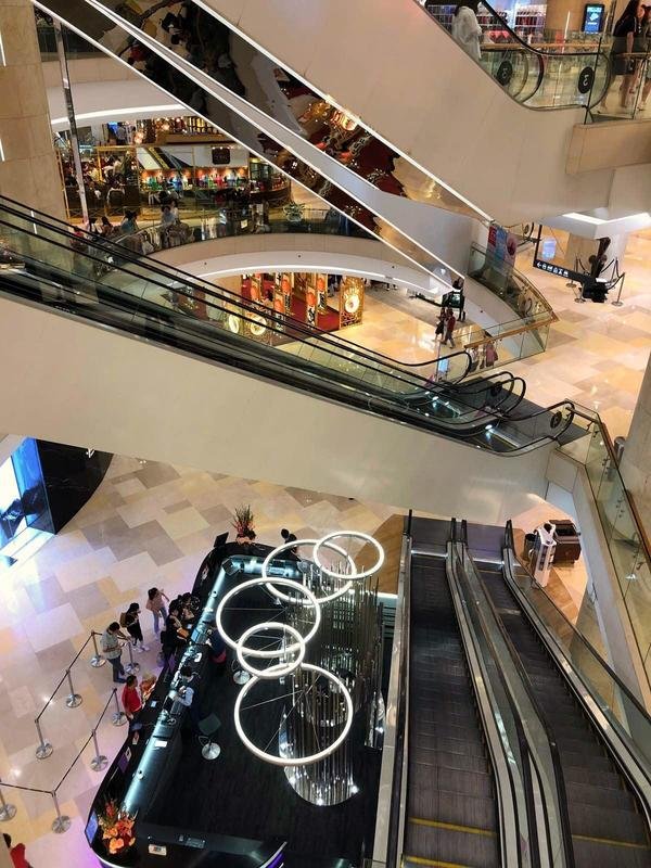 整个商场的设计如同澳门的威尼斯人购物中心,一条运河穿行其间,乘坐小舟惬意休闲。