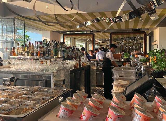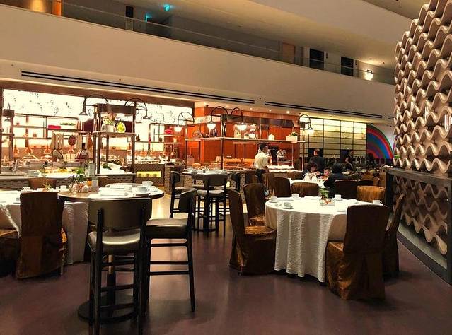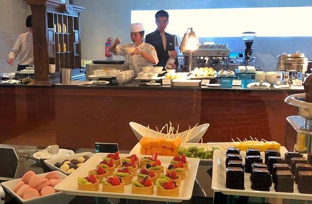 酒店自助早餐有三个餐厅可选,一是空中花园57层,面对无边泳池,二是一楼大堂两个就餐点,安静优雅。