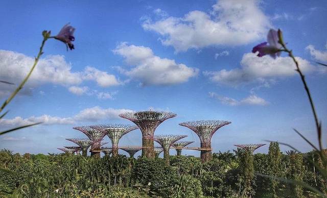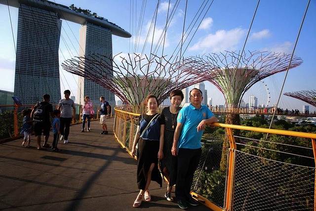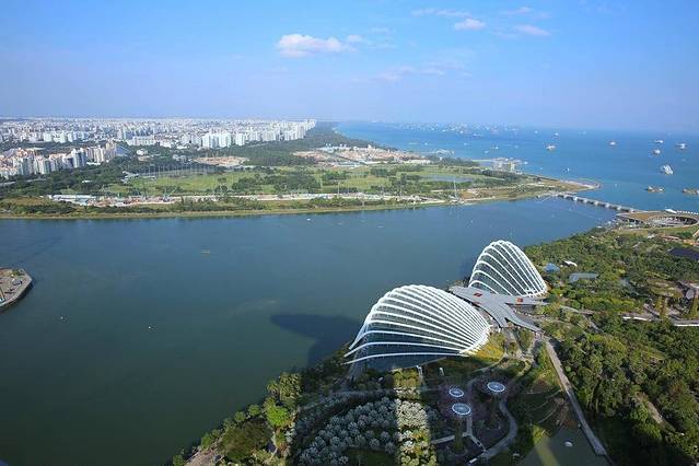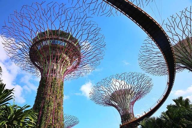 花费20新币,可以坐电梯登上超级树半圆形空中步道,将金沙酒店和滨海湾西侧的CBD中央区收入眼底。