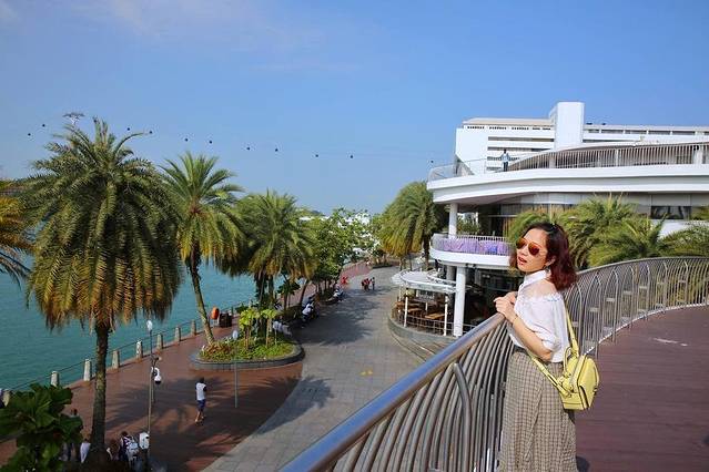 有四种方式前往圣淘沙岛,一是打车、二是高空缆车,三是轻轨捷运,四是跨海步道,最经济实惠更亲近海边的首选栈道步行,2018年所有人全年免费入岛(去年1新币/人)。
