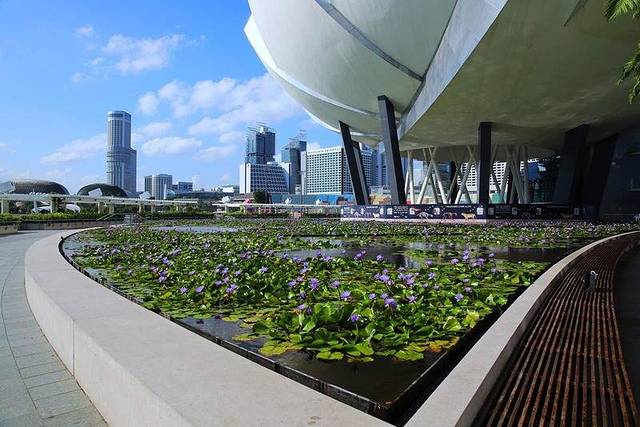 滨海湾金沙艺术科学博物馆,外形好似一朵盛开的莲花,屋顶收集雨水和光线,供博物馆日常使用,可见环保意识无处不在。