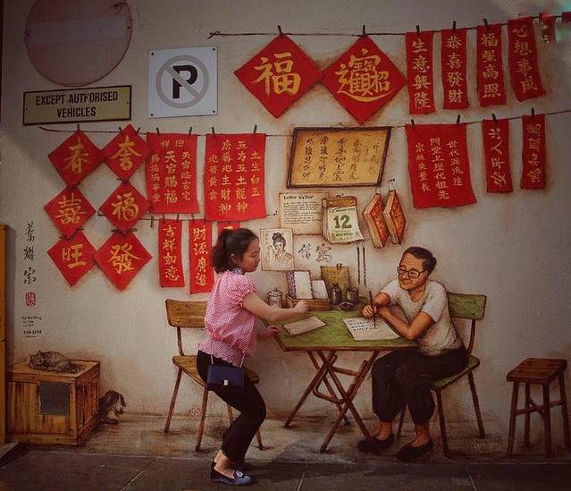 街边的壁画涂鸦,也融合了诸多的中国元素。