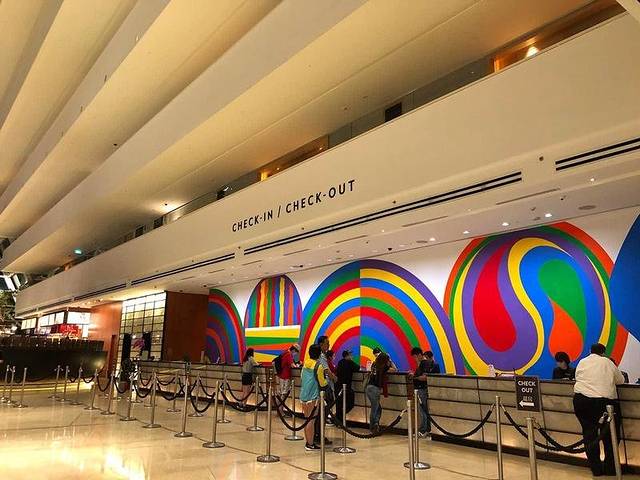 站在横穿酒店的天桥上,俯视金沙酒店内部,纵深感奇强,高大上。