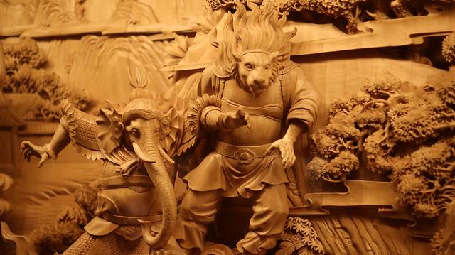 被雕刻艺术吸引的游客