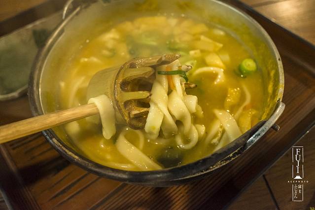 千万不用担心吃不饱,最后还有一锅富士山的名物“馎饦面”,这是一种手工汤面,由扁平的乌龙面加上蔬菜及味噌炖煮而成的一种面食。味道不错,和冉先森分完整整一锅。