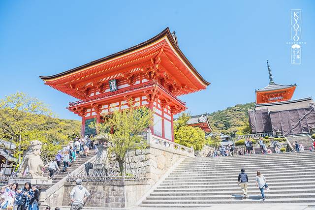 清水寺座落于音羽山的半腰,因寺中清水而得名,现为日本佛教北法相宗的总院。在其周围布满了京都的名胜古迹。