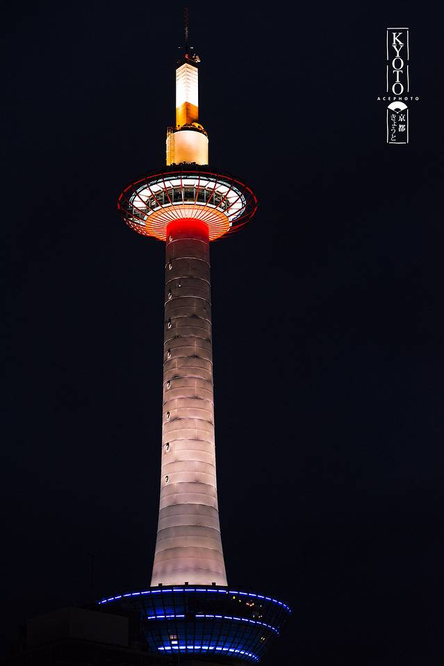 采用灯塔造型的外观看起来有点像日式蜡烛,十分醒目,夜晚华灯初上,京都塔发出柔和的灯光,照亮京都的夜空。