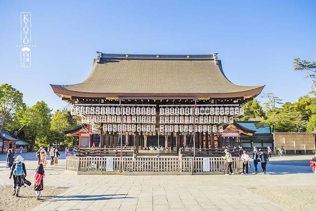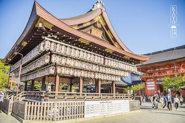 八坂神社香火鼎盛,深受商人喜爱。舞殿上无数的提灯,让它成为日本独特的神社建筑。