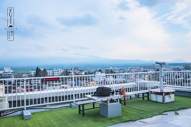 和冉先森刚放下行李就直冲顶层露台,就是为了赶在日落前能亲眼目睹壮观的富士山,然而今天天气不是很好并没能如愿,云层似乎太厚了,把富士山基本全遮挡住了,完全看不到庐山真面目,着实有点郁闷,也借此告诉大家并不是到富士山来就一定能看到富士山,全凭运气。