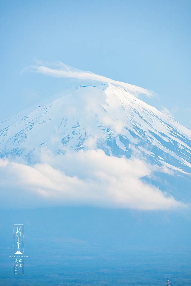 不一会儿就看到富士山山顶上方出现了一朵“山帽云”,不过这个帽子有点小,但是这种奇特的现象也不是每次都能看到的。