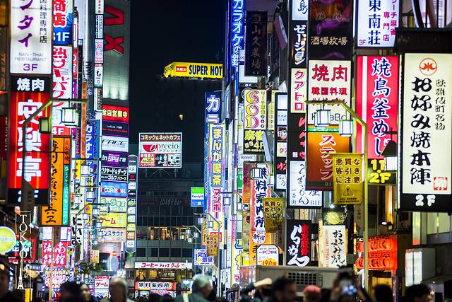 入夜,歌舞伎町灯火通明,喧闹异常,其中不少店营业至天明。酒吧等娱乐场所吸引着大批人驻足。