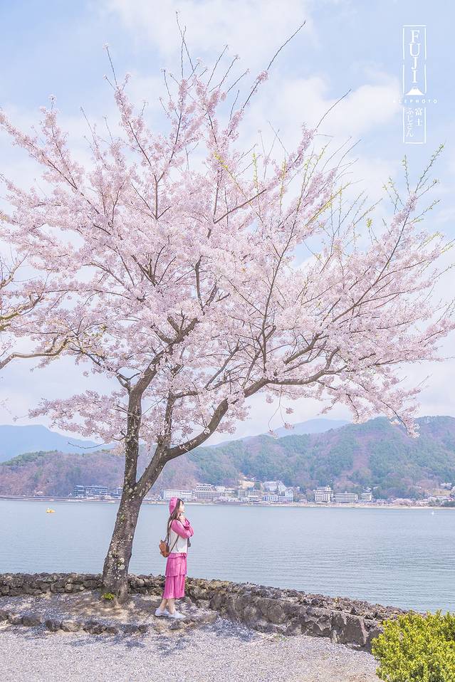 四月和煦的微风带着樱花瓣吹过脸颊,富士山下的河口湖,微澜荡漾。