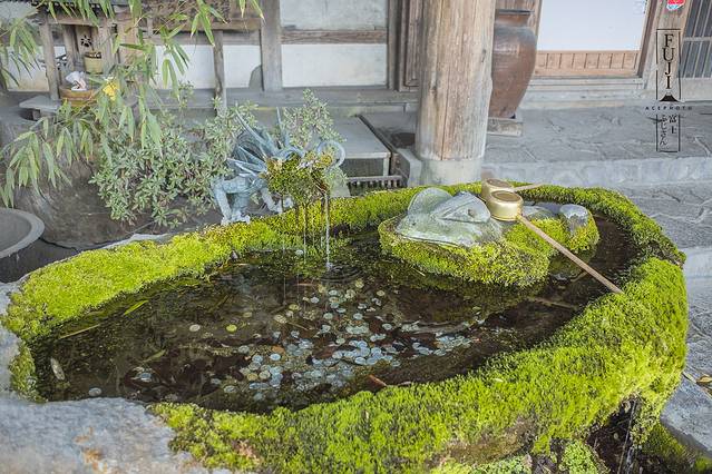 门口处也设计了一个颇有禅意的手水舎,底部还有许多钱币。