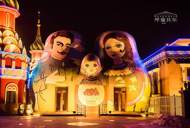 主体建筑是一个高约30米的大套娃,据说是目前世界上最大的套娃。套娃外部彩绘由代表着中俄蒙三国的美丽女孩组成,主体套娃内部为俄式餐厅和演艺大厅。