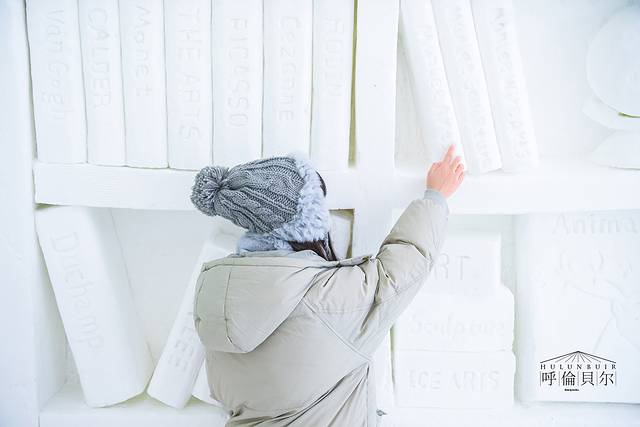用冰雪雕刻的书籍看起来还挺逼真,上面的英文字体和图腾真的会让我恍惚间感觉穿越到了北欧去,这样的雪白纯净的世界真的会让人心静下来。