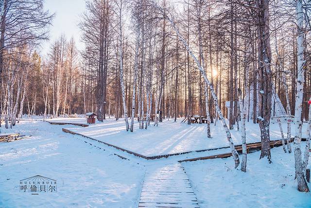 相较于车外零下二十多度的温度,车内还是温暖多了,今天是2017的最后一天,我们似乎都忘了给对方准备礼物,可此刻在这遥远的北方,我和冉先生一路相伴,携手而行,不正是我们给对方最好的礼物么?在行至根河的路上,伴着车子的起伏颠簸,我们都渐渐睡去。不知道睡了多久,到白桦林时天色渐暗。