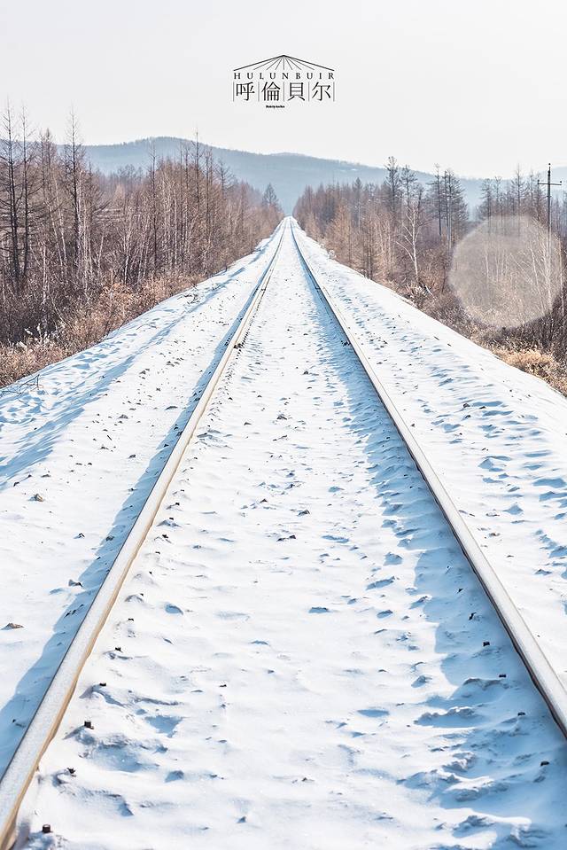 从不冻河到冷极村的路上看到一条不知是通向何方的铁路,铁轨已被大雪覆盖,看样子像是很久没有列车经过了,路的两旁满是高大的桦树林,这场景好像有点似曾相识的感觉,陌生又亲切。