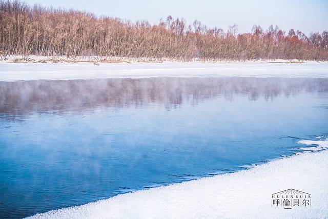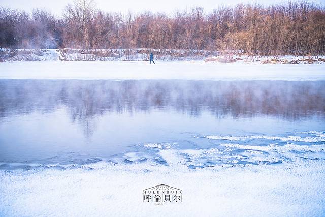 从额尔古纳前往根河的路上经过一片神奇的不冻河,在一片白茫茫的雪地上蓝的是那么耀眼,河面上蒸腾着雾气看起来像是无人踏足过的仙境。