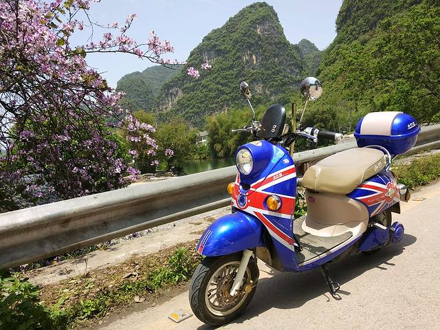 今天也是在阳朔的最后一天、没有过多的行程安排睡到中午退房、把行李寄存在客栈租个电动车准备骑行十里画廊!