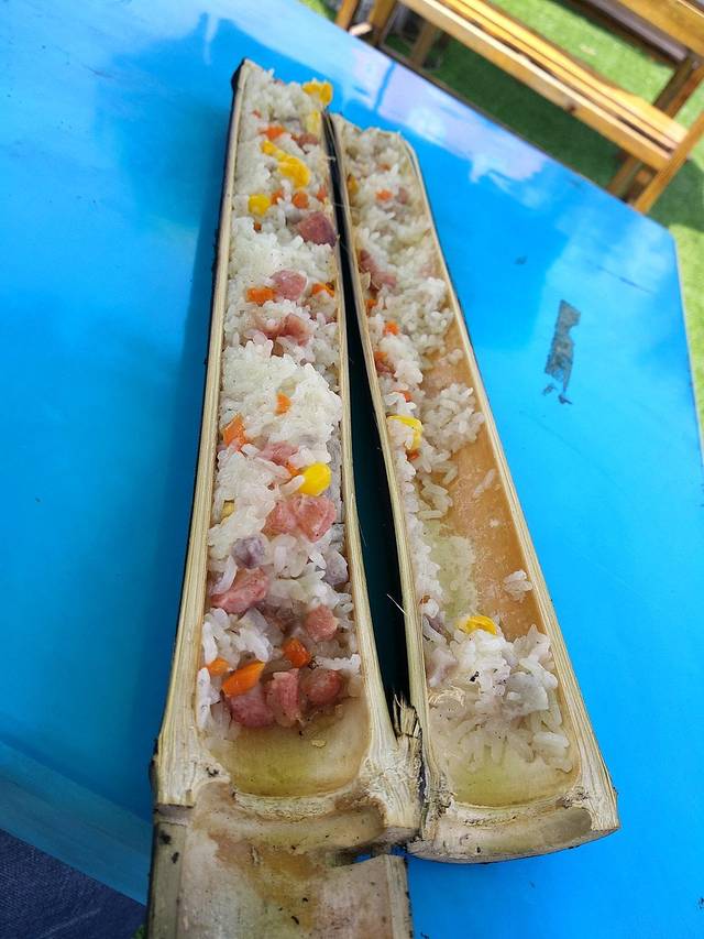 睡到中午一直没进食肚子也挺饿的、骑车路上发现路边有卖竹筒饭的赶紧停车补充补充能量~