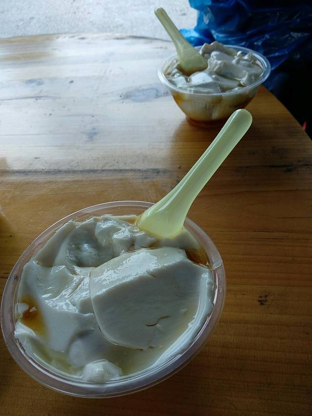 上岸后路边摊卖的豆腐花、不太吃得惯,喝了一口就没在动过了!