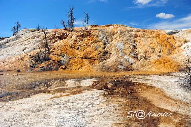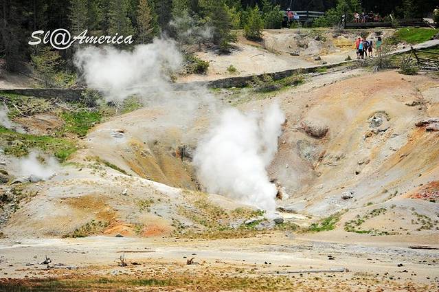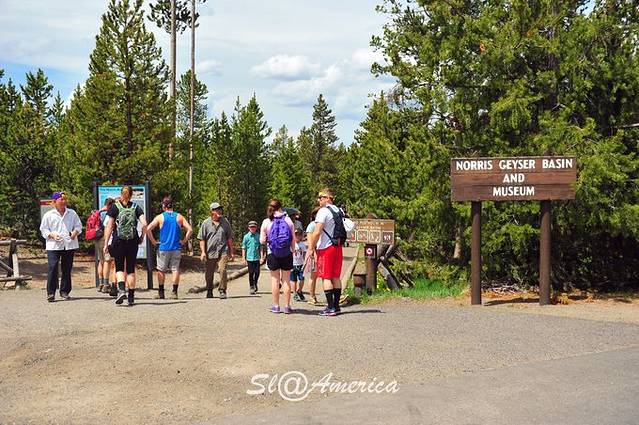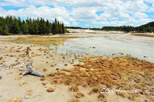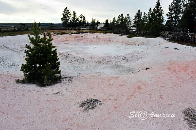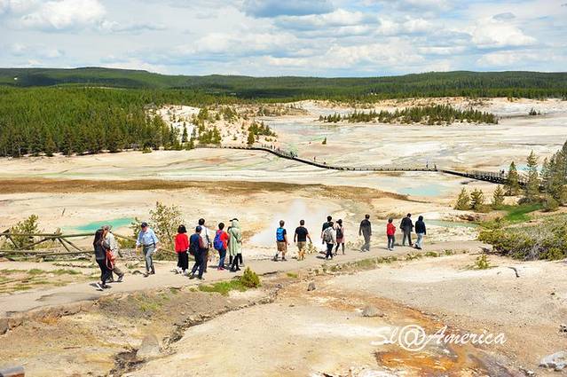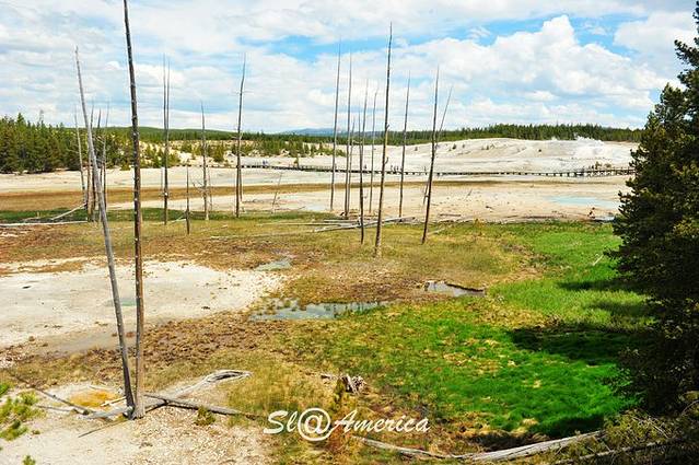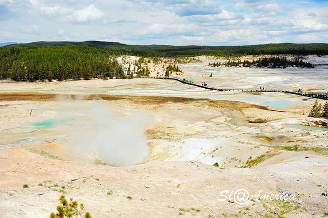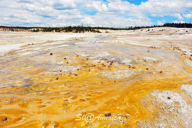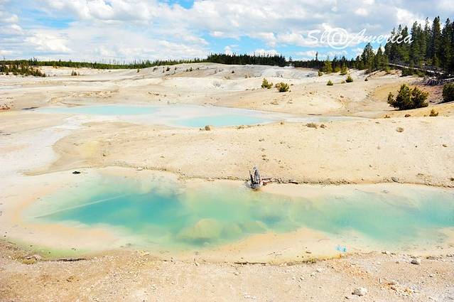Porcelain Basin Loop,这条步道只有1公里的路程,分散着不少间歇泉。同时,要知道,诺里斯间歇泉盆地是黄石地区温度最高,历史最久,最活跃的地热区。目前整个黄石地区通过钻孔测量记录到的最高温度在诺里斯(Norris)地下326米处,237摄氏度。诺里斯地区几乎就没有低于沸点的地热活动(在黄石的海拔上沸点为93摄氏度)。