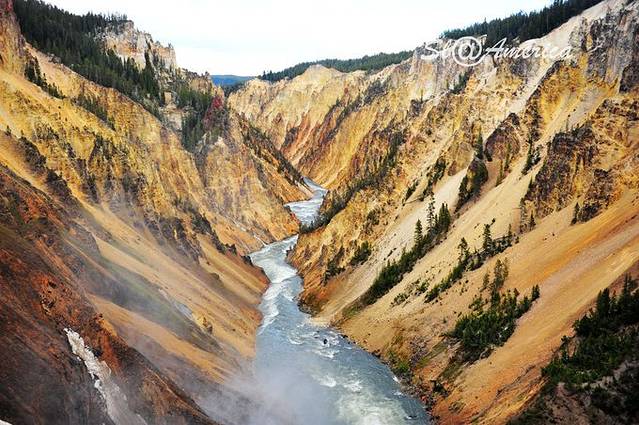 黄石大峡谷,虽然在我去过的峡谷中,它并算不上是最美的,但远远望去却有着油画般的感觉,总让人不自觉地多看几眼