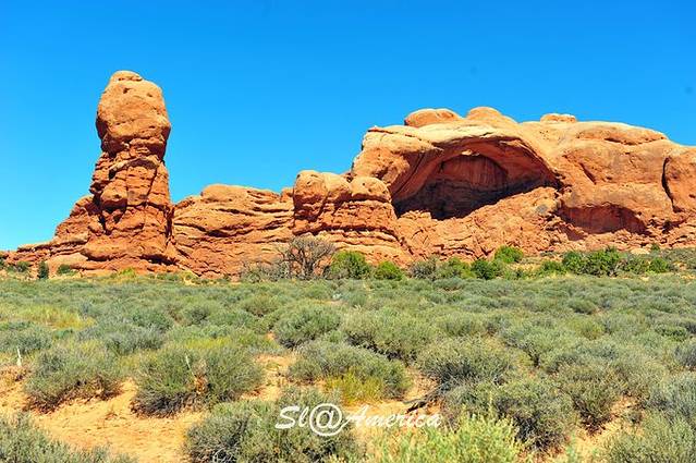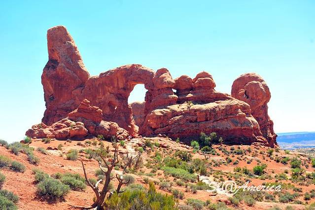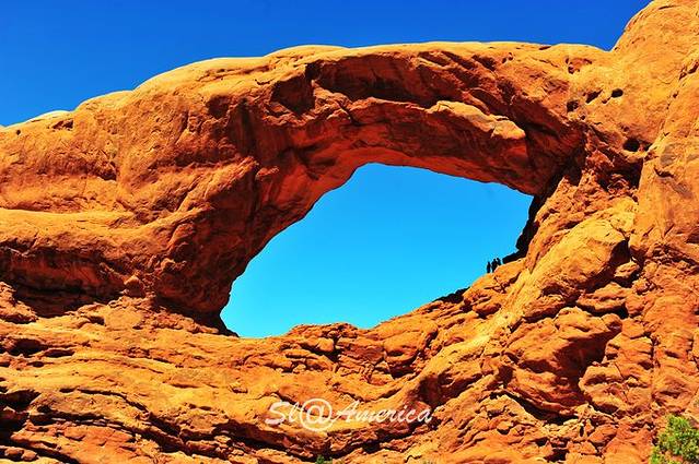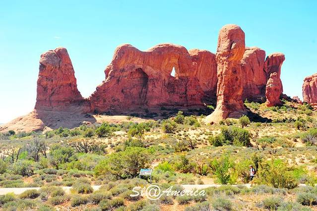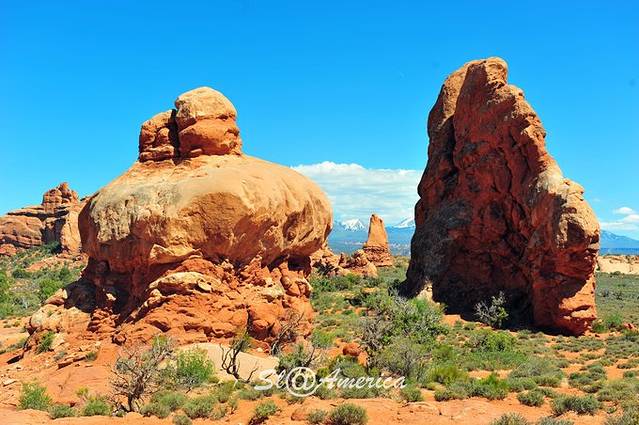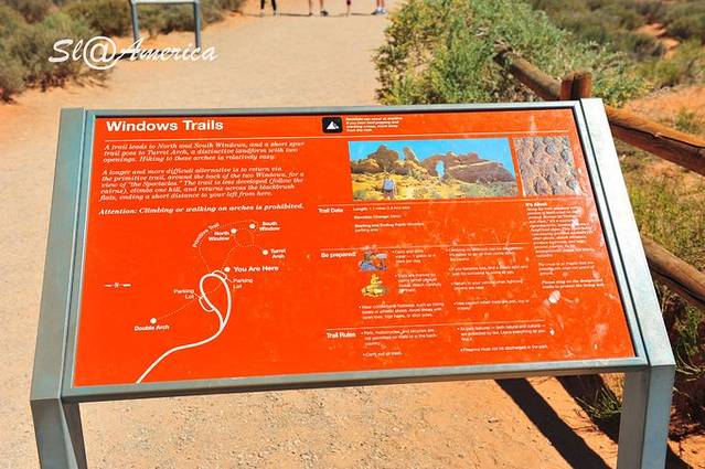 The Windows Section,距离平衡石很近,这里一直开车走到路的最里面即可到达,著名的南北窗距离停车场很近,当然,它们旁边还有处很有特点的拱门,即是Double arch,这个岩石是在南北窗的另一面,但距离主路也是很近,走过去10多分钟即可到达。