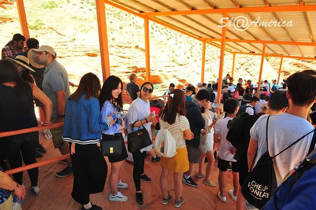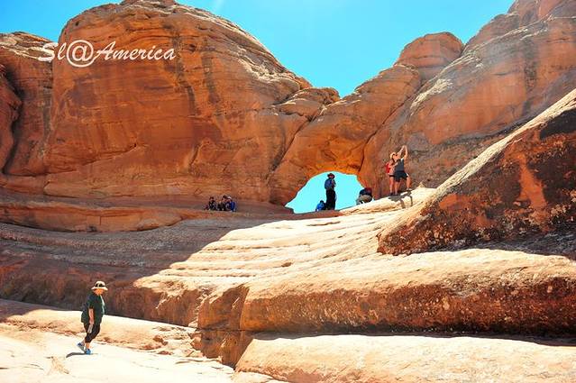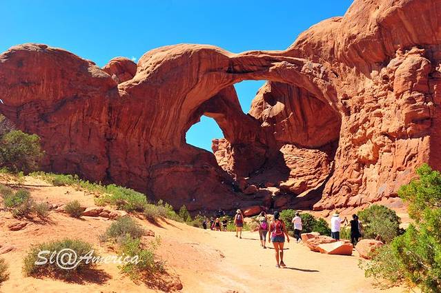 在南北窗的另一侧便是Double arch的步道,这个拱门显然比南北窗更受到欢迎,很多人来这里游览加上避暑。