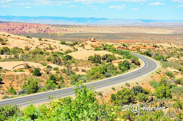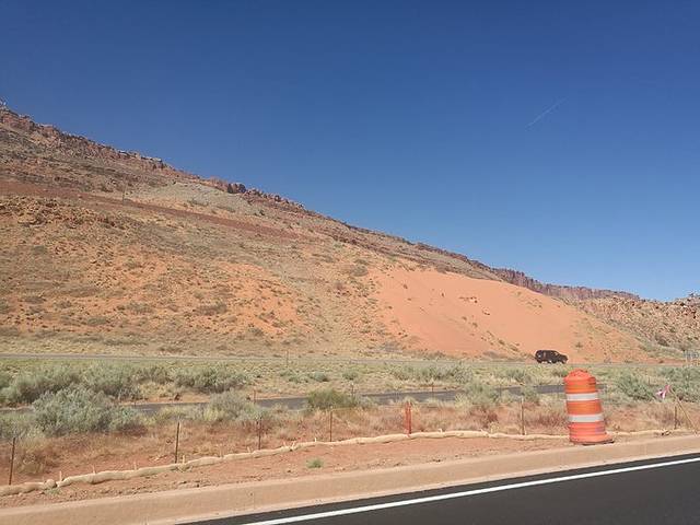 从盐湖城周边开到拱门国家公园大概350公里,但用地图导航却要5个小时,不知道为啥会这么长时间,一路上公路都是很不错的柏油路,美国人开车都很快,时速100公里以上毫无压力,这里似乎很少有国内似的电子眼,要查超速一般都是警车来直接查,因此尽量跟在快车后面即可,一般说是只查头车的违章。